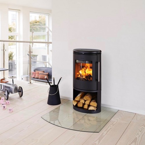 Morsø 6843 Wood Burning Stove. A beautiful ellipse cast iron stove with an organic shape. The door handle stays cool during use and conceals an elegant solution with a self-closing door. EcoDesign 2022 Compliant. 5KW rated output. Rear and Top flue outlet option.