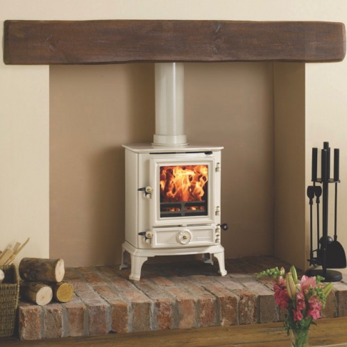 Accommodating for most tastes, this wood burning and multi fuel stove is available in both matt black and ivory and the subtly industrial feel creates a smart aesthetic. There’s also the option to change the length of the legs to achieve a more elongated, streamline look.